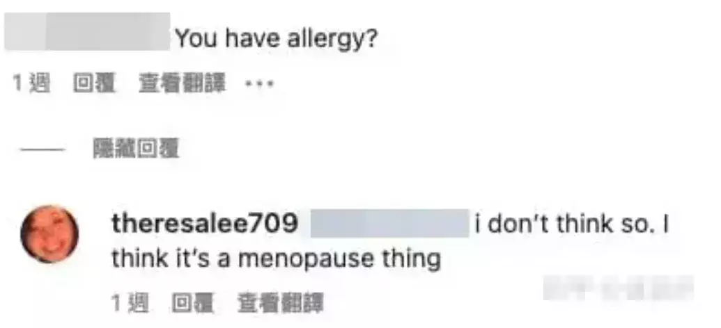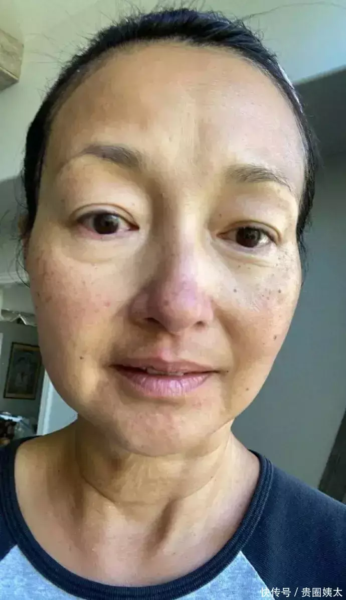 有东说念主问她是不是过敏了,怎么脸上红一块白一块还有许多黑点。她说不是,我认为是更年期的问题。