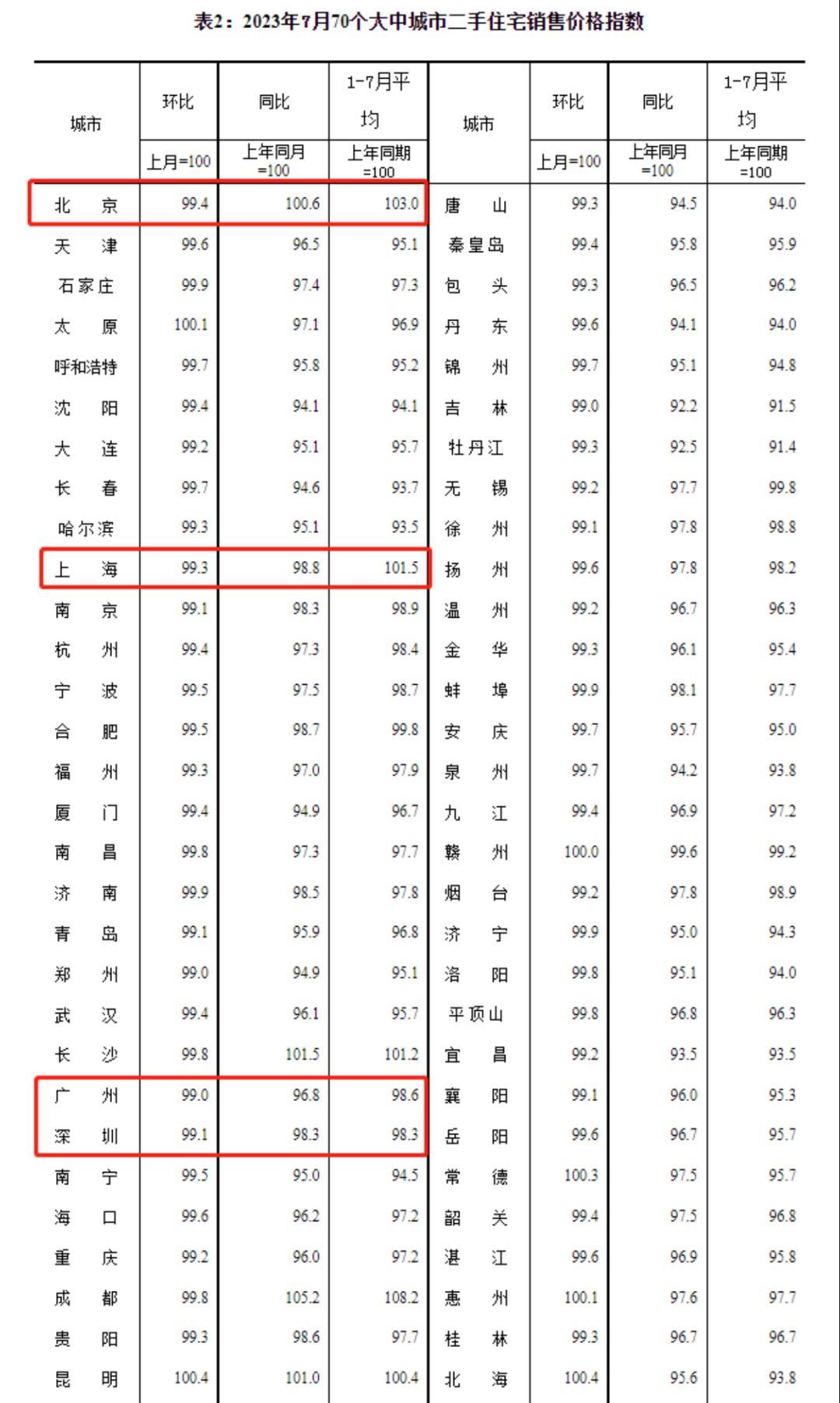 再行建商品住宅看,7月份,一线城市新建商品住宅销售价钱环比联接两月捏平,其中北京和上海环比分别高潮0.4%和0.2%,广州和深圳环比分别下降0.2%和0.6%;二线城市新建商品住宅销售价钱环比由上月捏平转为下降0.2%;三线城市新建商品住宅销售价钱环比下降0.3%,降幅比上月扩大0.2个百分点。
